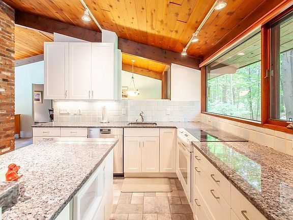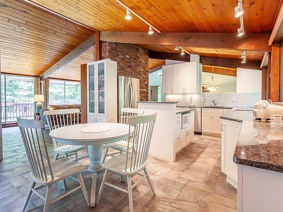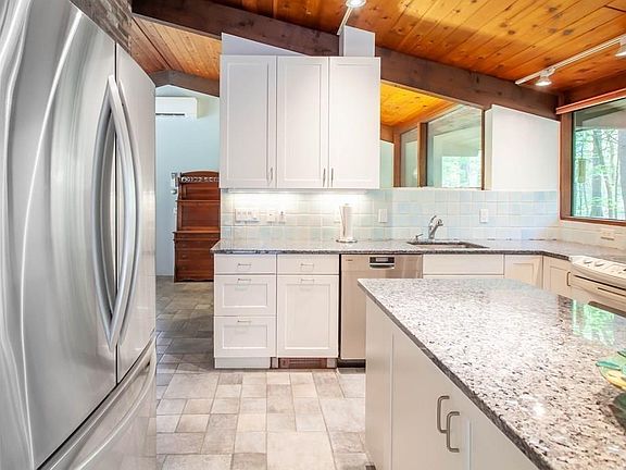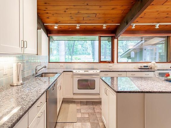 Classic Mid Century Deck home , has been improved and maintained to perfection! The Sellers have loved this magnificent home and you will too!! Beautifully sited on 2.47 very pretty acres, set back from the road and abutting Great Brook Conservation land. Enjoy cross country skiing, hiking, and biking right from your back yard. The home has been enhanced over the years with a large addition that includes a spacious welcoming mud room, an oversized 2 car garage, family room off the updated kitchen, and central air, plus a newer roof. The home is open and bright with walls of glass and cathedral cedar ceilings, floor to ceiling center brick fireplace in the living room, large deck and a very flexible floor plan. Come see why these transferring sellers wish they could take this well loved home with them.. You won't want to leave either...