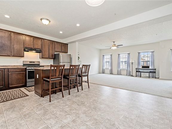 Move-in ready end unit St. Martin model townhome located in The Village at Harmony Junction! The side yard and backyard greenspace provide plenty of privacy and great views of the surrounding scenery. The bright, open concept floor plan on the main level features living room with gas fireplace and gourmet kitchen with an extra large island, tall cabinets, and stainless appliances. You will also find a conveniently located half bath & laundry room on the main level. Off the kitchen you will find a SPACIOUS ADDITION, which can serve as a dining area or sunroom, and houses a sliding glass door that leads to the private backyard. The impressive primary bedroom with ensuite includes TWO walk-in closets & huge tiled walk-in shower with glass surround. The oversized two car garage offers plenty of storage space w/an area that can be finished for more living space! HOA incl, grass cutting, landscaping, exterior maintenance. Just North of Cranberry, minutes to I-79, Zelienople, parks, schools.