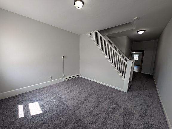 Large 2 bedroom, 1 bathroom townhome in Pottstown, PA, has all new carpet and fresh paint, newer windows. This home features a Spacious Living Room, Dining Room, Very large eat-in kitchen that includes an electric stove, dishwasher and refrigerator. The home includes a large basement, off-street parking and washer dryer hookup. Tenant is responsible for electric, and hot water. Owner pays Sewer, Water, Trash, and lawncare, and snow removal. The finished attic would make a great office or playroom.