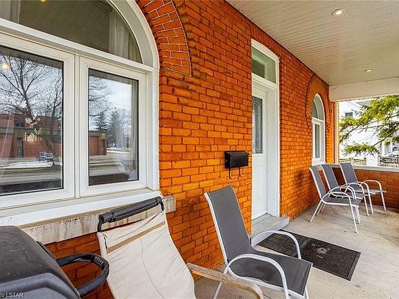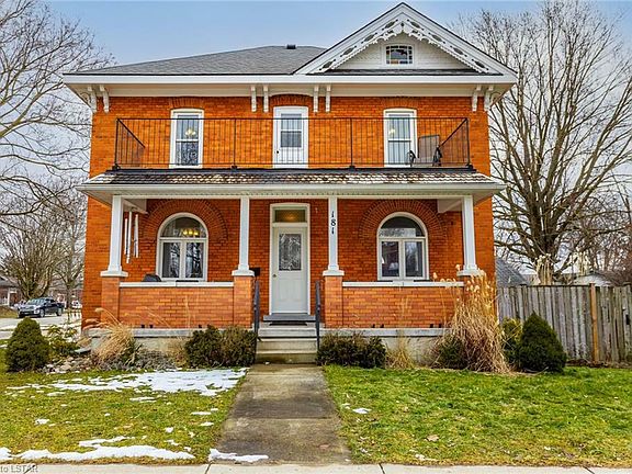 Nestled in the heart of Mitchell, a charming, family-oriented community, this stunning red brick century home offers a perfect blend of historic charm and modern comfort. Just a short drive from London, Exeter, and St. Mary's, this home's central location provides easy access to many amenities while maintaining a peaceful small-town atmosphere. Boasting approx. 1700sqft of living space, this home features 4 well-sized bedrooms and 1.5 bathrooms. The main floor welcomes you with a semi-open concept layout, highlighted by a grand formal dining area that seamlessly transitions into a spacious kitchen with ample storage, double sinks, and abundant natural light. The large living area is adorned with a large picture window and elegant transom windows, offering a bright and inviting space for relaxation. Original hardwood flooring, intricate trim work, and stained glass windows throughout the home showcase its timeless character. The basement has been thoughtfully utilized, providing ample storage space, a laundry area, and bonus workout room. The side entrance from the deep driveway leads to a large (20x20) two-car detached garage w/hydro, offering convenience and functionality. Outside, the fenced yard is a private and perfect for family gatherings around the campfire, children's playtime or cultivating a garden enthusiast's dream. The expansive front porch and second-level balcony offer picturesque views, ideal for enjoying community fireworks and parades. Additional potential awaits in the walk-up attic, which could be developed into additional living space to suit your needs. This ideal family home is just steps from the local Elementary and High Schools, Lions Park & Splash Pad, Arena & Recreation Centre, and directly across from a large green space, offering endless opportunities for outdoor activities. Don't miss out on this incredible value and the opportunity to call this house your home! Schedule a viewing today and experience the best of small-town living.