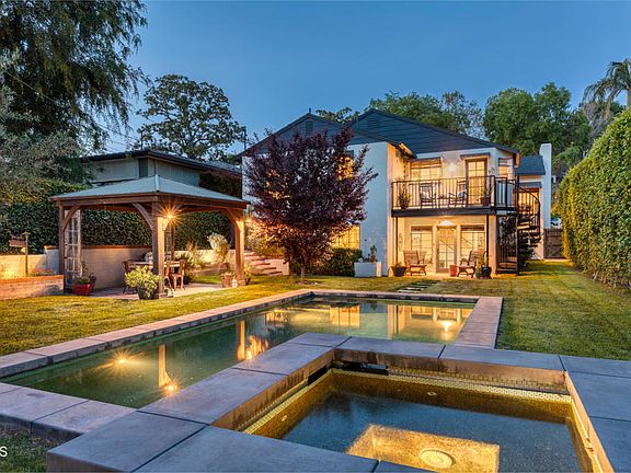 Located in the desirable San Rafael area of Pasadena, this spacious 3 bedroom, 3 bath residence has been thoughtfully updated with a contemporary flair. Set back from the street on a gentle grass knoll, this split-level residence provides versatile and flexible living options. The home offers an open concept with a sunken living room, a striking concrete fireplace with a custom fireplace screen, and an adjacent dining room. French Oak flooring is featured throughout the upper level and provides a warm and modern feel. The custom-designed kitchen overlooks the rear yard and includes updated stainless appliances, quartz countertops, a custom-tiled backsplash, an eating area, and a butler's pantry. The upper level also offers two spacious bedrooms, an updated central bathroom, and the primary suite, which includes a spacious updated bath and walk-in closet.A handsome sliding barn door transitions nicely to the stairway leading to the lover level of the home. The many windows provide natural light for the family room, an updated bath, a large third bedroom, and a home office/art studio which could be used as a fourth bedroom. There is also a spacious laundry room and additional storage under the home.The rear gardens are inviting and lush, with mature landscaping and grass areas surrounding the generously sized swimming pool and spa. A gazebo/patio area provides shade and is perfect for Al Fresco dining. In addition, two patios on both levels of the home provide views of the rear yard.This home is perfect for indoor/outdoor entertaining, and its prime location provides easy access to Old Town Pasadena, the iconic Rose Bowl, Arroyo Seco, and downtown Los Angeles.