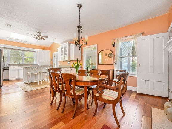On a historic and lampadaire-lined street, this renovated and expanded farmhouse offers the charm of a Greek revival with the conveniences of modern living! Enjoy privacy on a lush and extra-large backyard cooled by a canopy of mature trees. If approved by the Town, this rare, huge lot may offer room for garage or a pool. A cozy living room off the entry might have once been called the parlor, continuing to a large dining rm, modern kitchen, and huge family room. The 1st flr also offers 2 sm. BRs, a bath with walk-in shower, and laundry rm with a vintage sink. Step upon wide pine floors on the original side and Brazilian cherry in the addition. Upstairs offers 2 BRs, a full bath, and a sm. office with slider to a lrge balcony. Entertain on the back deck and savor a post-beach rinse in the outdoor shower! Newer gas, on-demand water heater and hi-efficiency heating/cooling as well! Located halfway between beautiful Keyes Mem. Beach .6 mile and Main St. with restaurants, shops, and the Kennedy Museum! Ferries to the islands, the marina, and waterfront dining are also close by at the Harbor. What a great hub for all of your Cape Cod adventures! Buyers/agents to confirm all details
