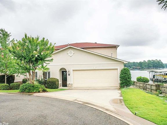 Main channel panorama views!! In gated community. Sitting on waters edge with 1,000 ft of boardwalk is this Beautiful Mediterranean Style Home offering 4Br. 3Ba. that includes all on main level Lg. Master Suite w/separate shower and Jacuzzi and one other Bedroom and Bath, the other 2 bedrooms and bath are upstairs. This home also has 2 covered decks over looking water and covered boat dock with new remote lift and 2-sea doo docks. Lake Hamilton Schools.