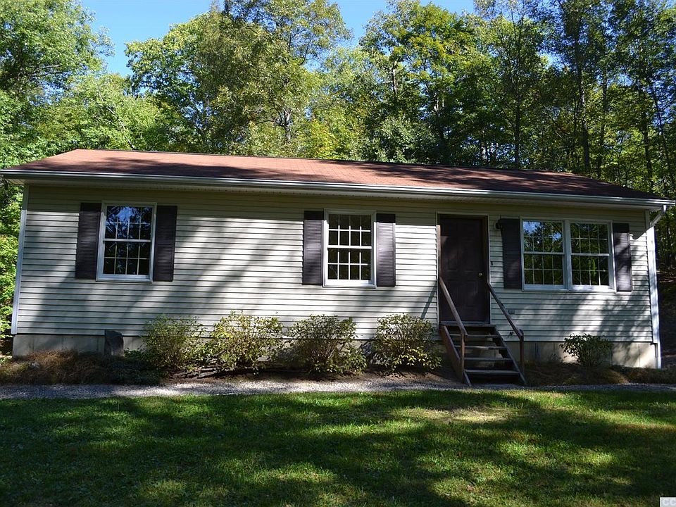 Private 9.8 acres on a quiet country road. Modular home is set back at the end of a long driveway. Beautiful woods dominate the parcel with several small clearings throughout. Property is rolling and level creating an interesting landscape. There is an old farm road that leads to a wooden 14x16 shed at the rear of the property. Shed has potential for small studio. Finishing touches needed for house flooring. Perfect weekend retreat or starter home.