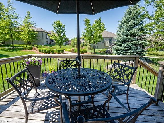 An impressively large, one floor home in an exclusive enclave of vacant land condos, known as "The Residences of Stonebrook". With over 3400 sf of finished area, the open concept floor plan and 9' ceilings offer a spacious feel and plenty of room for everyone. A large island kitchen with s/s appliances and loads of cupboard/pantry storage opens onto a bright living room and dining nook, a perfect place for casual meals. A wall of windows across the back provides pleasing views of the gardens. From the dining nook enjoy direct access to the rear deck where you can enjoy the tranquil sounds of the waterfalls. For more formal occasions enjoy the spacious dining room w/handy butler's pantry. A secluded master suite features a bedroom, den, walk-in closet and bathroom w/ soaker tub and separate shower. A second bedroom has ensuite privileges with main bath. An open staircase leads to the expansive lower level family room, 3rd bedroom and full bath. Truly a rare opportunity!