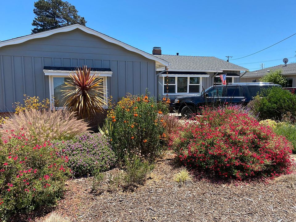 Updated single level home in a desirable neighborhood. This home has 3 bedrooms with 3 bathrooms and is in an established neighborhood. The kitchen has been updated with quartz countertops that includes a breakfast bar. There is ample storage in the kitchen and pantry area. Two of the bedrooms feature en-suite bathrooms, which also have upgraded granite countertops. The living room has large windows which allow for plenty of natural light. The dining room is a good size and is located between the living room and kitchen. There are solid floors throughout the house. The large backyard steals the show. There is a concrete patio that is perfect for entertaining, an area with pavers that makes for a great spot for a fire pit, and a large lawn. There are mature fruit trees (peach, avocado, and apple) and olallieberry vines, all of which produce fruit during the summer and fall. There is plenty of room for parking both in the two car garage, in the driveway, and on the street. Solar panels currently cover all electricity costs. Appliances include refrigerator, dishwasher, stove, oven, washer, and dryer (located in the garage). This home also has reverse osmosis drinking water, a whole house soft water system, and a tankless water heater. Easy walk to restaurants, stores, and parks. 12 month lease. Owner is responsible for gardener. Renter is responsible for all utilities (electricity is covered by solar panels). Pets considered with additional $500 security deposit. No smoking in the home or on the premises. Renter's insurance required.