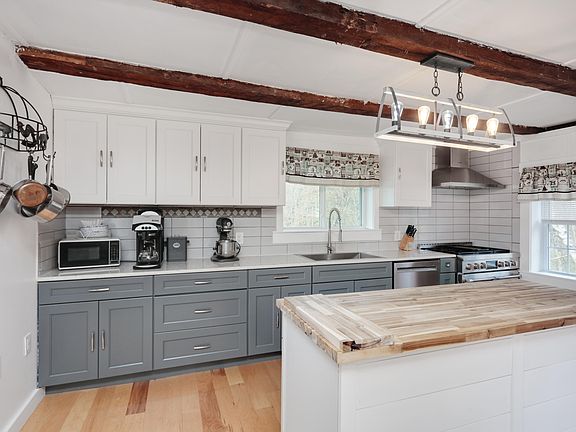 This 1852 farmhouse has been meticulously refurbished while preserving its historical features. Wander through rooms to find wide pine floors, cathedral ceilings in what was the attic, now finished for two large bedrooms. With room still left for 3 bathrooms, one with a claw-foot, tin tub, or enjoy crafting homemade meals in the dream kitchen. Dine by a cozy wood stove in the charming dining room, then relax on the porch or explore the barn. Don't miss your chance to experience the this farmhouse - schedule a visit before it disappears!