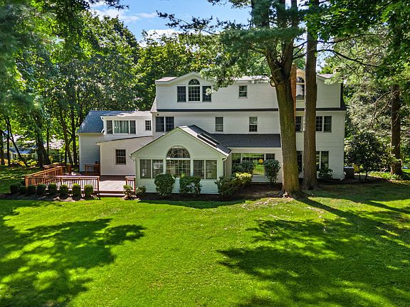 Turn of the century stone pillars and a scenic private drive lead to this stately 5-bedroom colonial in an idyllic cul-de-sac once known as ''Apple Tree Farm''. First time on the market in over 30 years, the property has been expanded, renovated and meticulously maintained throughout. The traditional center-hall, first floor layout has exceptional room scale and flow, and is highlighted by the stunning family room with picture windows overlooking the expansive custom wood deck and level 1.18 acre lawn. Up the main staircase are 4 well-appointed bedrooms including a generous primary and 3 family bedrooms. The separate 5th bedroom with en-suite bath is perfect for a nanny or in-law suite. Two deluxe home offices and exercise area with Palladian windows complete the 3rd floor. The gracious circular drive accents the spectacular private property with specimen trees, mature plantings and expansive lawns for recreation. 13 homes, including the historic "Dimon Bird House" comprise this magical neighborhood where kids and dogs can safely explore, and where neighbors gather. Conveniently located minutes to all town amenities, public and private schools, Metro-North and the 170 acres of the Pinetum and Pomerance Parks, this property is unmatched.
