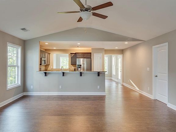 Awesome, large and open Ranch featuring 3 Bedrooms 2 Bathrooms with a Covered back porch backing to trees. This spacious open and inviting home features over 1600 square feet, large Vaulted Great Room, a Fully Equipped Kitchen with Kitchen Bar, Hearth Room with Gas Logs and a fabulous covered deck. Many upgrades include engineered hardwood flooring in the common areas and bedrooms, granite, tile, tiled shower, LED lighting and more. Call for your personal tour today! This is the Best value in Pleasant Valley! Home can be completed within 30 days. Call today for your personal tour!