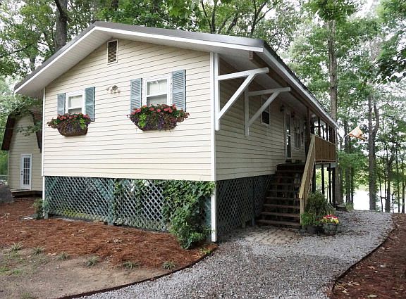 WOW! DEEDED WATERFRONT under $200,000! Nice 2 BR, 1 BA lake house at Low Falls with Great Rm, Eat-in Kitchen & Screened Porch over-looking the lake; adjacent Guest Cabin w/ 1 BR, 1 BA; 959 total Sq/Ft. Nice dock, .8 Acre lot w/terrace, gravel drive, under house Utility Rm & Storage. A great weekend get-a-way or a quiet little place to call home! Public lake access less than a mile away. Must See!