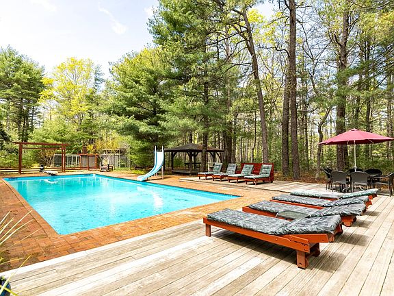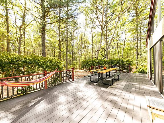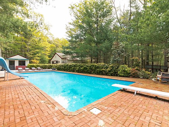Nestled in the serene beauty of the only pine tree forest in East Hampton, this property offers a rare blend of luxury and tranquility. Boasting 4 bedrooms and 3 full baths spread across 2.41 acres, this residence is a testament to elegance and simple secluded living. As you step inside, you'll be greeted by a spacious cedar wood interior replete with wood burning fireplace cozy evenings. It compares to the dream of a large cabin secluded in the woods, yet 3 minutes from Sag Harbor for morning coffee and shopping and a mile from a beautiful sunset bay beach. But the true highlight awaits in the extensive captivating oasis featuring an extra-large 20 x50 in-ground pool, along with a pool house with an Infrared Sauna and Bullfrog hot tub for ultimate relaxation. The allure continues with a separate studio building for music, art, entertainment, or office with a sleeping loft for guests. Every day feels like a retreat with the Yoga/massage Cabana, next to the organic garden, pool, sauna and hot tub. Stroll up the 800' driveway, past the back lot, to the adjacent miles and miles of trails. Whether you're entertaining guests or simply basking in the serenity, this home offers an unparalleled private lifestyle rarely seen in East Hampton.