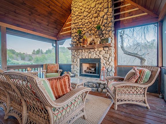 - Exterior: Porch, Private Location, Fence, Wrap Around Deck, Exterior Fireplace, Screened Porch, Out Buildings Workshop