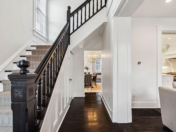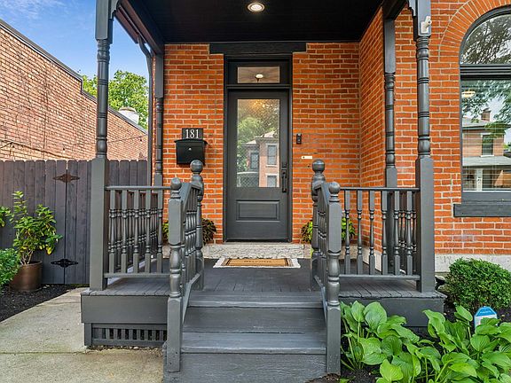 STRIKING design by Behal, Sampson, Dietz blending historic charm & modern living! Entry level offers SOARING ceilings, built-in shelving in living room, SPACIOUS eat-in kitchen w/ custom cabinetry, quartz countertops, marble backsplash, Jenn Air Pro Series appliances, built-in bev. bar & HUGE island. Mudroom w/ TONS storage + built-in desk, rare find in GV! Separate office space & full bath. 2nd floor offers 3 bedrooms, 2 full baths + laundry. Primary suite w/ TWO walk-in closets & SLEEK en suite w/ marble shower, dual sink vanity & water closet. EXPANSIVE 3rd floor w/ wet bar & 4th full bath, perfect FLEX space. OVERSIZED 2 car garage w/ EV plug + private gated drive w/ 2 add'l parking spots. Featured on the 2019 German Village Haus Und Garten Tour. Steps to all German Village offers!