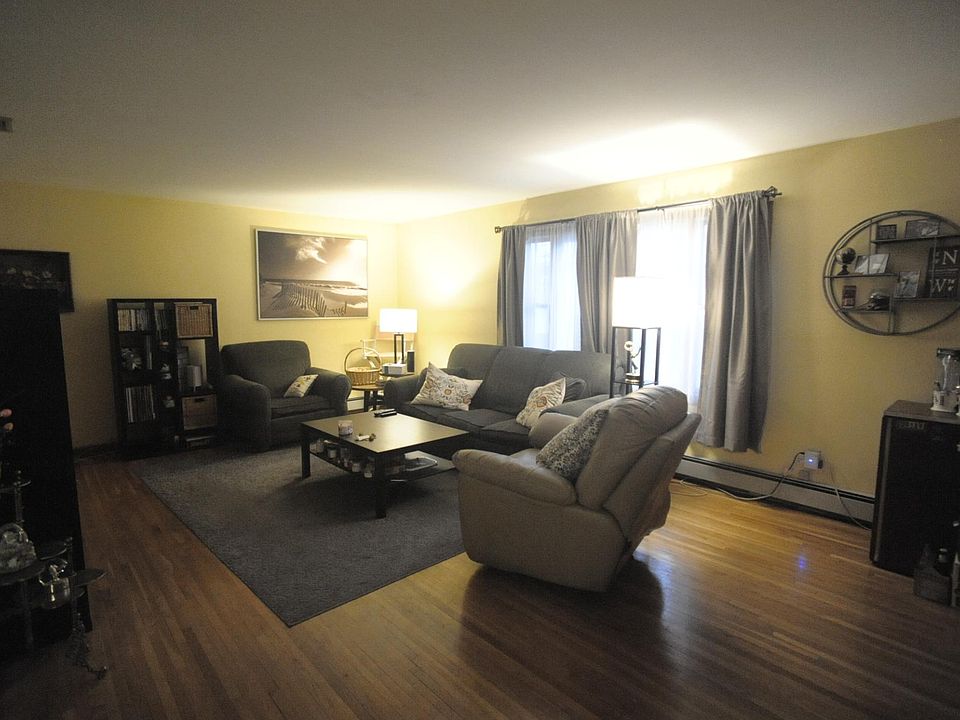 Spacious 3 bedroom, 2 full baths with a master suite. Large living room/dining room combo. First floor unit in a 2 family home. Owner occupied. Close to all amenities. Washer/dryer in unit. By owner - no fee lease Annual Lease MUST have good CREDIT and WORK HISTORY This apartment is located in East Rutherford, NJ next to the Rutherford Train Station. It features: - 3 large BRs with large closets - 2 full bathrooms - Washer and Dryer in unit - Refrigerator, stove / oven - hardwood floors - central A/C - Driveway parking space provided for 1 car - free street parking - smoke free - easy access to bus and rail to NYC The utilities are separate - tenant pays own electric, heat, and hot water. 1.5 month security due at lease signing. Directly across street from Rutherford Train station. - 1 minute walk to Train and Buses for New York City commute. - 30 mins to Penn Station by Train. 25 mins to Port Authority by Bus. - 1 block from Downtown Rutherford, restaurants and bars for entertainment. - 1 block from Local Gym. - 2 blocks from public municipal baseball, football and track & field running track. - 10 minute walk to Shopping strip with Panera, Marshalls, ALDI and other restaurants Not considering dogs at this time, but may consider other smaller pets. Close To Hoboken, Jersey City, New York City, Union City, North Bergen, Guttenberg, Bayonne, Carlstadt, Cliffside Park, Clifton, East Rutherford, Fort Lee, Garfield, Hackensack, Hasbrouck Heights, Leonia, Little Ferry, Lyndhurst, Moonachie, Palisades Park, Ridgefield, Ridgefield Park, Rochelle Park, Rutherford, Secaucus, Teterboro, Weehawken, West New York, Wood-Ridge, Manhattan, Avalon Rutherford Station. Must have good credit and work history. $75 non-refundable Credit and Background Screening required.