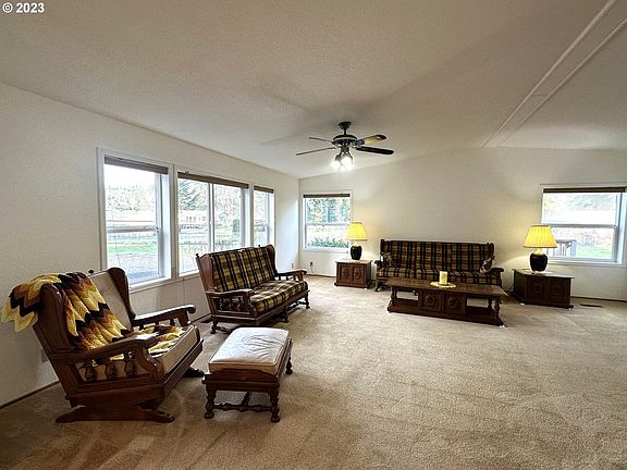 Almost riverfront and with all of the perks including beach access and irrigation. The perfect home and property for a buyer who wants elbow room and privacy with the convenience of being close in. The land is all usable, in-ground sprinklers deliver river irrigation. The three bay garage/shop is a dream, the middle will accommodate a 37 foot motor home, the two additional bays will each fit a car, man cave, she shed or hobby shop. It also has a pantry, overhead lofts, concrete floor, 220 outlet and 2 garage door openers! The home has elegant features including granite in the gourmet kitchen, both bathrooms and spacious laundry room. Both bedrooms are an en-suite with full bath, guest bath also has hall access. If you need a third bedroom, the giant living room already has a full sized closet, adding a wall (no demo) would create the third bedroom and still leave a large living room! High speed fiber internet is provided by DFN. The legendary North Umpqua River, only one property away, is famous fishing waters; swimming and boating are also popular. This property really does have it all and if you act fast, you can too!