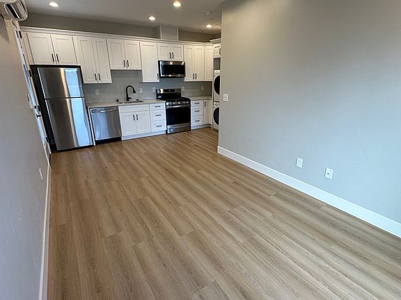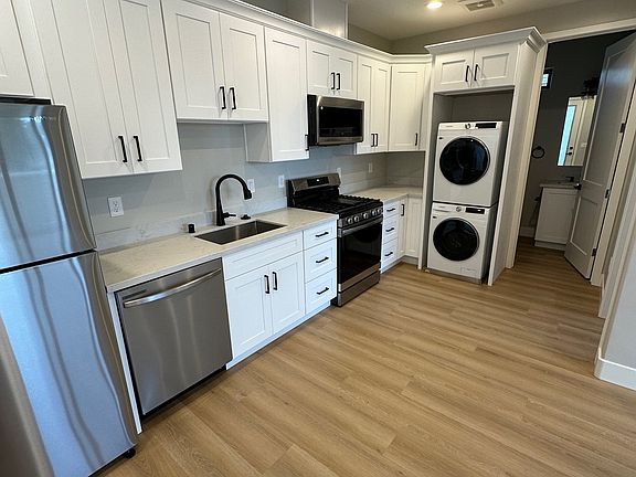 Brand new upstairs 1 bedroom / 1 bathroom apartment. Full kitchen In unit laundry. Balcony off living room 1 space off street parking in driveway. 1 garage space. No yard. Don't let zillow charge you for an application. I don't charge application fees. send me a message, i'll reply with an application, and you can bring the filled out application by my office which is right next to the apartment. Tenant pays all utilities. One year lease minimum.