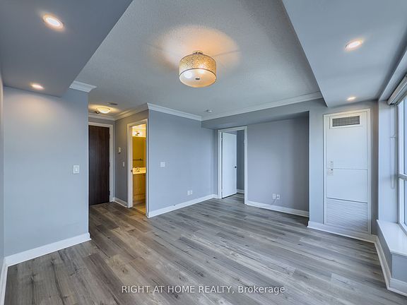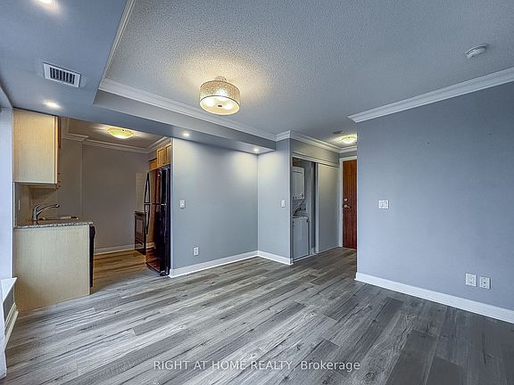 Highly Demanded and Very Convenient Kennedy/Hwy 401 Location, Ventus 2 at Metrogate by Tridel, Functional and Spacious w/almost 500 sf, A Cozy One Bedroom layout, Floor-to-Ceiling Windows In Living and Bedroom brings a Lot of Natural Light, Crown Molding through out, Considerably Numerous Upgrades: **1) Brand New Vinyl Flooring, **2) Newly Painted on Baseboards, **3) Brand New Pot Lights, **4) Brand New Microwave w/Hood, **5) Brand New Range Top, **6) Brand New Washer & Dryer, **7) New Window Coverings in Bedroom and Juliette Balcony, A Must See Unit! One Parking is Included, 24/7 Concierge, Premium Amenities, Easy access to Hwy 401/404/DVP, TTC & GO Transit, Close to Shops, Supermarkets, Banks, Restaurants, and many more...No Airbnb, No pets and non-smokers please per landlord.