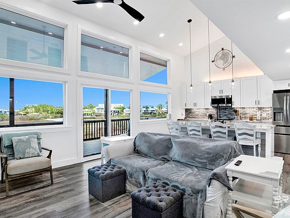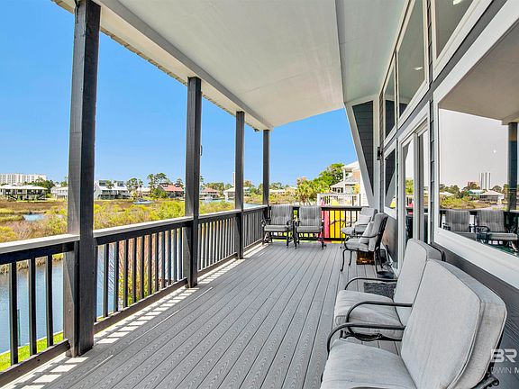 Nestled in the heart of Gulf Shores, Alabama, this stunning canal-front home was remodeled in 2022 and offers the perfect blend of coastal charm and modern convenience. Boasting breathtaking south-facing water views like no other, this beautifully remodeled residence is designed for comfort and entertainment. The open-concept kitchen, dining, and living area features soaring 16’ sloped ceilings, elegant quartz/granite composite countertops, and craftsman-style finishes. The kitchen has plenty of surface area for food prep, and the farmhouse sink adds to the charm of this gem. The beautiful windows overlooking the lagoon are outfitted with UV-cancelling tint. Speaking of the view - you'll be excited to invite friends and family over for a summertime BBQ - where you'll enjoy the expansive back deck, complete with retractable sun screens, and enjoy fireworks on the Fourth of July and New Year’s Eve from the privacy of your own home. With hurricane-rated windows, updated plumbing and electrical, and a metal roof, this home is built for durability. The backyard is partially fenced to keep the fur babies in, and there is an outdoor shower w/ hot/cold water (perfect for rinsing off after an afternoon boat ride. But wait - there's more: a bulkhead with an 8,000 lb. elevator-style boat lift makes this a true boater’s paradise. Conveniently located within walking or biking distance to beaches, restaurants, and local attractions, this Gulf Shores oasis is the perfect place to embrace the coastal lifestyle. Buyer to verify all information during due diligence.