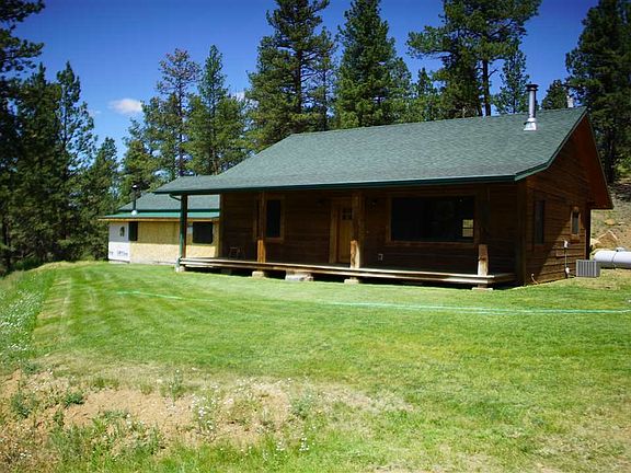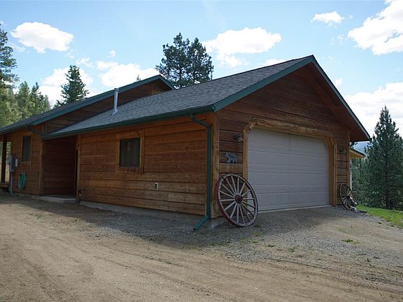 Modern ranch home that borders national forest in the Elkhorn Mountains. The home is all one level with a loft bedroom. It has a very open floor plan and is very well built with, corbond insulation, cherrywood cabinets and hickory floors! The heated attached two car garage also has a workshop area. The home is accented with 2x12 draw knifed wood siding! Aside from the two other methods of heating the home and garage are also set up for wood stoves.