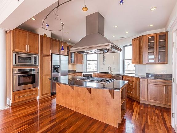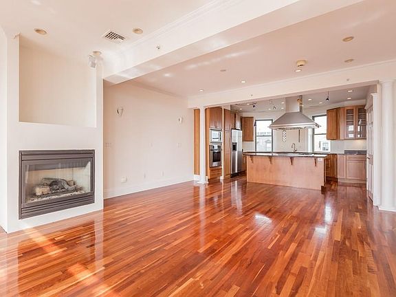 Located in East Boston's coveted Jeffries Point neighborhood, this spectacular two bedroom, three bathroom penthouse duplex features over 1,300 square feet of living space with jaw dropping views of the Boston skyline. The first level features two large bedrooms with en-suite bathrooms. The master bedroom is rear facing and includes a gas fireplace and a private deck with city views. The second floor features an open concept living room with high ceilings, a gas fireplace, a dining space and with stunning views that expand onto your second private deck. The state of the art kitchen includes gas cooking, granite countertops, a wine fridge, plenty of cabinet space and views of Brophy park. Off the kitchen is a staircase that leads to your private roof deck with panoramic views as well as a built in gas grill perfect for entertaining. Gleaming hardwood floors, central air, w/dr in unit and a large storage room complete this rare offering. Showings start on 8/20