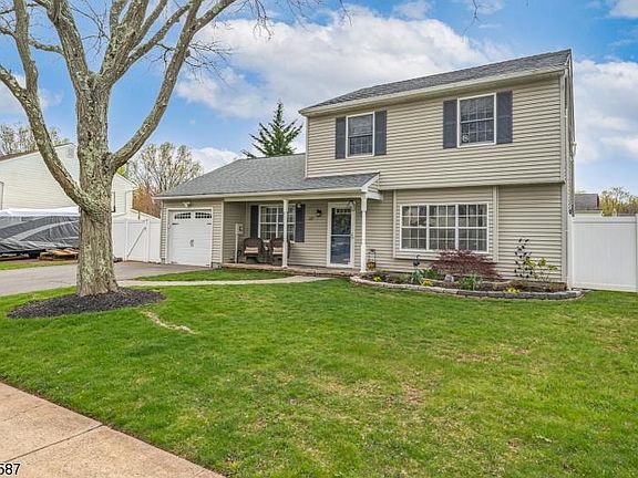 Own in this quiet residential community: "Sunrise @Hillsborough"; Perfect starter home w/ 3 BR's, 1.5 updated baths, spacious living room w/ new laminate floors overlooking a picturesque front yard. The dining room is spacious with chair rail & shadowbox trim; kitchen updates include, new backsplash, freshly painted, SS appliances, new slider (2016); first floor laundry and storage room/utility room; one car garage with auto openers (2015) and pull down attic stairs (2020); The backyard is truly paradise with mature landscaping, a paver patio spanning the length of the entire home, a playground (2017) and above ground pool, full privacy fence surround (2014). Pool filter: 2019; Pool liner: 2018; HVAC: 2015. This home is in move in condition!