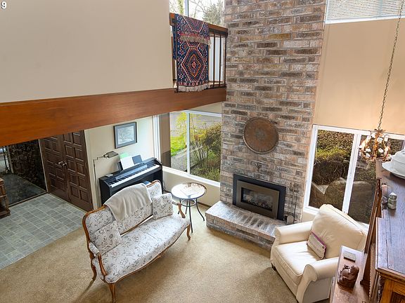 Stunning 2 story gas fireplace graces living room & loft with unexpected charm. 2st ductlessheatpump, 2018. New carpet upstairs, some fresh paint. Stainless dishwasher; range w/ 2 ovens. Flexible floorplan opens to private patio to 2 car garage. Dining room and loft have built ins. Very private, quiet setting. Complex built around creek with pool& clubhouse. Just under 1 mile Edgewood Shopping Center, parks, schools, many hiking trails.