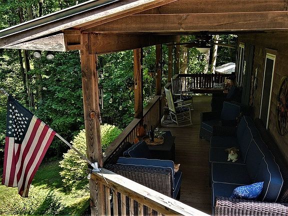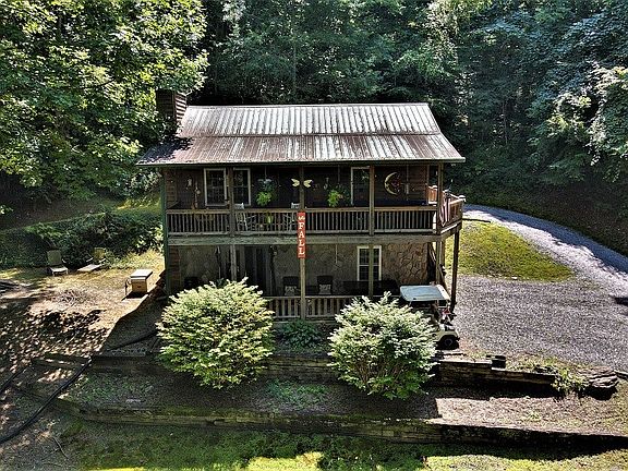 TAKING BACKUP OFFERS! This cozy cabin is an opportunity to own a piece of the mountains either as your mountain retreat, an investment, or as a permanent home. It could be one complete home or two separate living quarters. A full kitchen with a solid wood countertop, gas cooktop and a convection/airfryer oven, bedroom, and full bathroom upstairs, and the second bedroom, kitchenette, sitting area and a bathroom downstairs. Each level has a gas log fireplace. Sit on the porch with your morning coffee or your glass of wine at night and take in the breathtaking view of the mountains. The property has been surveyed with a portion marked off for an additional house site. If that's not enough, there is a 6 bdrm septic. No power? No problem with a Briggs and Stratton full house generator, and a Generac for the well below, both in working condition, this cabin will welcome you for years to come.
