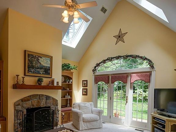 - Liv Dscrp: Flooring - Wall To Wall Carpet, Fireplace, Ceiling - Cathedral, Skylight, Ceiling Fan(s)