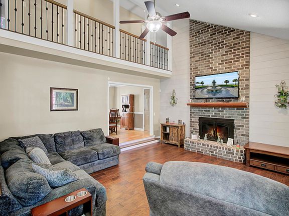 Big price improvement on this Gorgeous setting with an inviting full front porch! Step in to family room with vaulted ceilings & large brick fireplace. Wood laminate flooring throughout the main living space & into the kitchen. Stainless steel appliances, double oven, granite counter tops, tile back splash, with a large island featuring the suspended kitchen cook top hood. Plenty of cabinets, space for bar stools, & trimmed with crown molding. Step out on to the enormous screened porch & fully fenced in yard with mature trees. Master bedroom & bath located on the main floor has dual sink vanities in the bath with a large walk in shower & walk in closet. Upstairs to a two additional bedrooms, large bonus room over the garage & 2nd full bathroom. Tucked in a cul-de-sac w/ two car garage!