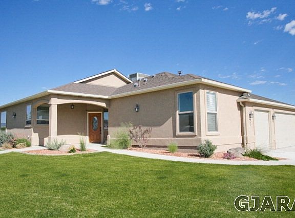 Great Curb Appeal!! Corner Lot with covered porch over the front Entry and a nice view of Grand Mesa. Vaulted Ceilings and 9 foot exterior walls in this wonderful floor plan. Corner sink in the kitchen has 2 windows to enjoy the Mesa view, also. Spacious inland/bar in the kitchen and a nice pantry that open to the living and dining areas...and gas fireplace. Master bath includes 6' soaking tub, 5' walk-in shower, double sinks and spacious walk-in closet. 5 tubular sky lites bring lots of natural light in to this home. There is an open patio off the dining/living room and another covered patio off the master bedroom. Professionally landscaped yard and 6' vinyl privacy fence with 10' double gate for RV parking. All appliances included in the kitchen. check out the virtual tour at: http://www.ubuildtours.com/natour.php?id=A42E