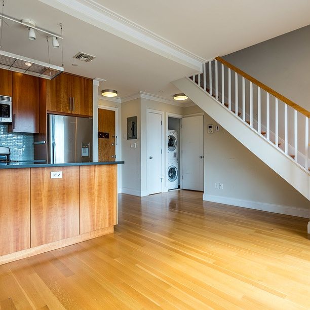 Outdoor Space Patio Roof access Private roof deck Built in microwave Dishwasher Stainless Steel Appliances Eat In Kitchen Hardwood floors Central A/C Washer dryer installed Duplex All pets ok