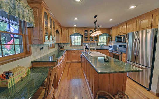 - Exterior features: Stone, Wood