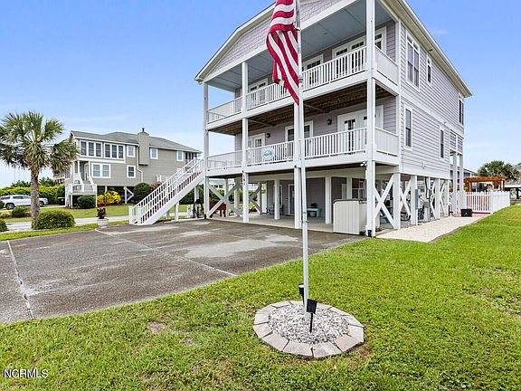 Welcome to Yacht Watch Dr. One of The Best locations on the island! Why? Quick access to the bridge, quick walk to the park, the pavilion for the summer concerts, ice cream, candy shop & great restaurants. But don't forget about the VIEWS along this street! Plus this home is a super quick walk to the beach! You have heard ''move-in ready'' over & over but as soon as you drive up, you will notice how meticulous the owners are. This is not your ordinary beach house, it's never been rented, it's a beach Home! The lower level offers a huge area to drop everything before using the outdoor shower..ever had a rain shower? Now you can! This floorplan works for everyone so imagine having 2 separate living spaces with a master suite on the main floor, 2 more bedrooms and a full bath. This reverse floor plan will showcase the ocean views from the updated kitchen with granite ctops, stainless appls farm style sink & tons of natural light but wait until you see the private master suite upstairs! Just pull the pocket door to enjoy your private bath, oversized walk-in closet and a bedroom fit for a king. Make sure to see the extra bonus area from the side porch or upstairs master. This makes a great hang-out space or if you need a private office. This kitchen will be a dream to cook in with this open floor plan to the living area and separate dining area. Sit at the bar & talk about the day or plan tomorrow. Imagine sitting on 1 of the 4 covered porches with VIEWS galore! Watch the boats go by on the ICW from the front and enjoy the back while others can enjoy the pool. This isn't just a pool...this is an oasis! Need some shade? The retractable awning will provide that while others are splashing in the salt water pool. Need choices for dinner? You will love the outdoor kitchen which offers a built-in char-grill, outdoor sink, prep space, flat top grill & there's even a pizza oven!