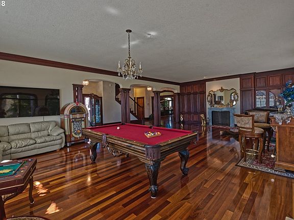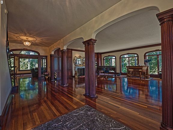 Absolutely stunning one of a kind palatial estate! Custom brick construction with excellent layout and amazing attention to detail. Built with only the finest materials and quality craftsmanship; mahogany wood floors, vaulted, interior columns, Italian marble fireplace, travertine, granite, Wolf range-gas, cherry cabinets, balcony, courtyard, 6 car garage, and vault. Conveniently located in North Bend's finest subdivision.