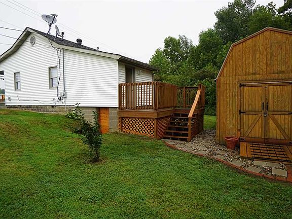Move in condition, freshly painted one level home. Eat in kitchen open to living area. Wood laminate flooring throughout. Laundry center with storage space. Covered front porch and open deck overlooks private back yard. New barn has electricity and attic storage. Includes range and dishwasher. Updated bathroom. Immediate possession.