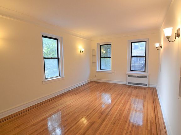 This beautiful 1 bedroom apartment located on 4th floor of elevator building, features large eat in kitchen, large living room, high ceilings, hardwood floors, 3 closets, Live in super, heat and water included. common laundry. Sorry no dogs.