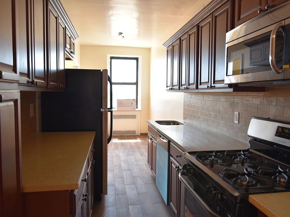 Must see extra large 2 bedrooms Large living room with extra foyer 2 full size bedrooms Large eat in kitchen Large bathroom Hardwood floors Elevator laundry building Super on site Close to transportation and shopping.
