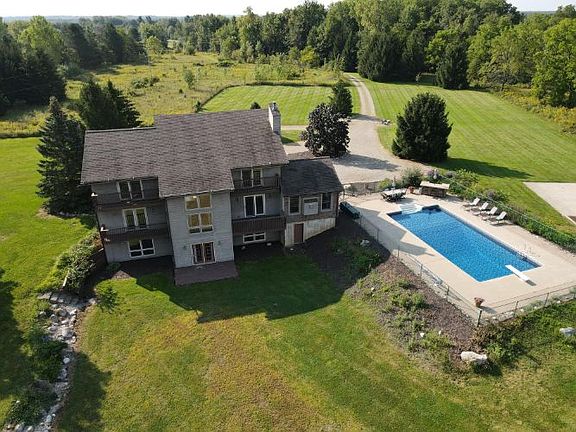 Welcome to 1810 Battle Creek Rd! This beautiful well-maintained 4 BR 2900+ sqft home is situated on a 35+ acre piece of paradise. Upon entering, you'll walk under a catwalk which overlooks the 2 story great room and the stunning entry. The updated kitchen features granite counters, a large island and flows into the dining area. Primary suite and laundry are on the main level as well as the 4-seasons room with a fireplace and 2 half baths. Upstairs are 2 large bedrooms and a full bath. This property also boasts finished walkout basement with a game room, family room (with field-stone hearth fireplace area) and 4th bedroom. For your outdoor activities entertainment you'll find an in-ground pool with a new liner, basketball court, stocked pond, ATV horseback trails,