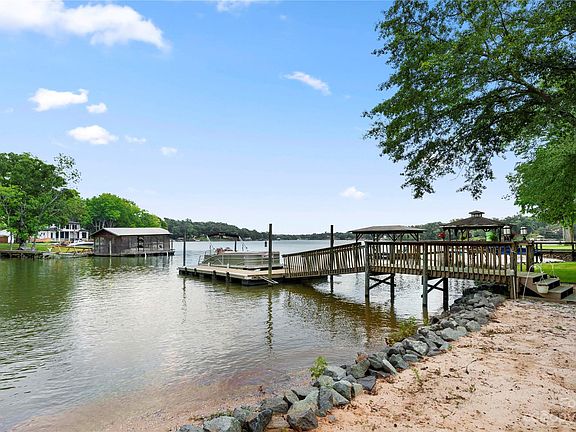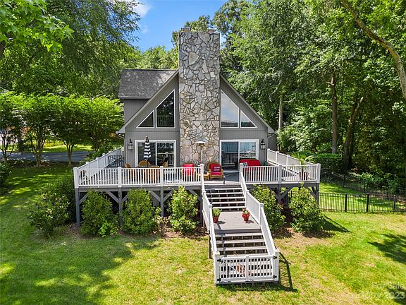 Don't miss this wonderful waterfront home nestled on 2.3 acres with over 225’ of shoreline with a sandy beach! This A-Frame home features a two story great room with masonry stone fireplace, wood floors, kitchen with granite counter tops and breakfast bar, and private primary bedroom suite tucked away upstairs. Great outdoor living on the glorious wrap-around deck to enjoy tranquil views & sunrises overlooking the wide channel of Little Allison on Lake Wylie. Daylight basement level with its own entrance could be converted to separate living space. Two flex rooms without closets and full bath are perfect for whatever use needed! Enjoy sitting on your own beach and heading out on the lake from your own dock. Outbuilding and huge oversized three car garage on circle driveway.