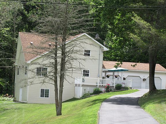 Nicely updated 4 bedroom with sweeping views of the valley. Cathedral ceilings in living room with second floor balcony. Home has recent kitchen, updated baths, newer central air and siding. All windows and doors replaced. New huge covered porch with plenty of room for seasonal gatherings. Finished lower level walk-out with family room, 4th bedroom, and lots of storage. Large detached 3 car garage for the toys. Just 3.5 miles to the highway with quick access to Athens, Sayre or Elmira.