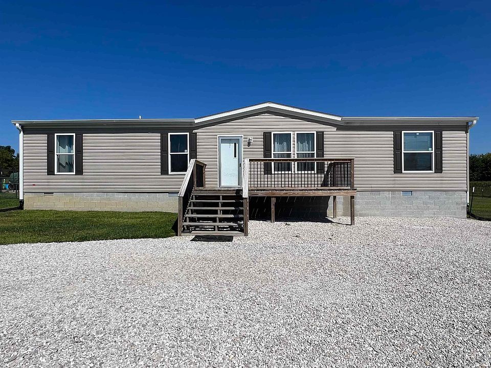 Welcome to your charming rural retreat in Lynnville, IN! Nestled on an expansive 4.5-acre lot, this modern manufactured home, constructed in 2020, offers the perfect blend of serenity and comfort. As you step inside this ranch-style abode, you'll be greeted by an inviting open floor plan spanning 1,512 sq ft of living space. The spacious kitchen is a true delight, equipped with all appliances, a convenient work island, and a pantry for your culinary adventures. It seamlessly flows into the family room and dining area, making entertaining a breeze. The home boasts three generously sized bedrooms and two full baths, providing ample space for family and guests. The master suite is a true haven, featuring a walk-in closet and a private bath for your relaxation and privacy. One of the standout features of this property is the 14x28 detached garage, offering plenty of space for your vehicles, tools, or hobbies. Additionally, the large deck spanning the back of the home provides the ideal spot to enjoy al fresco dining, morning coffee, or simply bask in the beauty of your surroundings.