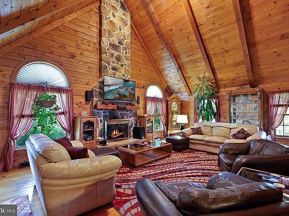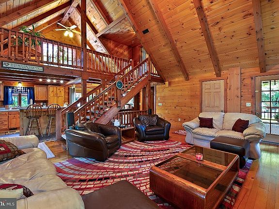 Log Cabin home lover's Enjoy this custom D- Log cabin home. Quit country setting on over 1 acre of land across from 'Tree Top Golf course' and near state game land. Nice open floor plan in living room with hardwood flooring, a stone fireplace, 27' vaulted ceilings with exposed beams through-out log home. Open kitchen / dining area with ceramic tile, Kitchen Island with bar stools. Master bedroom suite on 2nd floor with vaulted ceilings, full master bathroom and Jacuzzi tub and walk in closet. Two other bedrooms on first floor and full hallway bathroom. Loft / sitting room overlooking living room area. Detached 24'x24' 2 car garage with electric and openers. Superior walls in basement with outside entrance to stairway to garage area. Large 6'x 18' front porch area, Large 15'x20' deck off dining area with above ground pool 27'x 54' with a partial deck around it and a partially fenced in yard with invisible fencing around property for dogs. Home has all newer mechanicals and is heated with propane furnace with central air and a propane hot water heater 2015. Finished rec room in the basement area. This is a must see Log cabin home, all appliances stay.