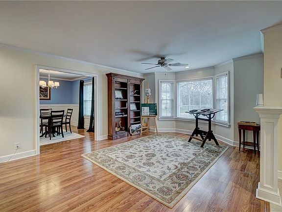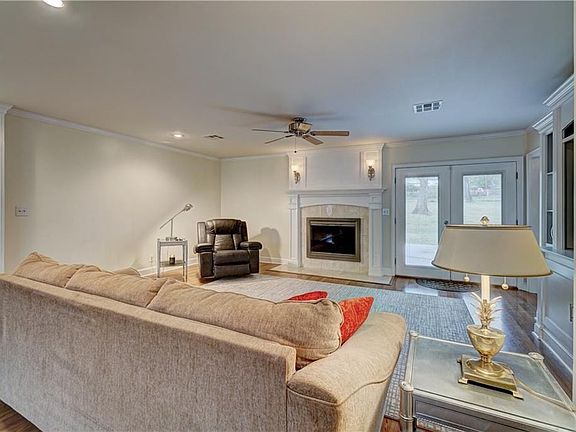 Hop on this rare opportunity to live on one of Shawnee's most scenic streets! Off the beaten path, kiddos can ride bikes safely and evening walks are simply pleasant. As if this street couldn't be quieter, low-e double-hung windows and Levolor blinds insulate you in quality. Every room is tastefully decorated with serene colors and finishing touches like crisp white crown molding throughout. A voluminous living room is anchored by a wood-burning fireplace and richly designed built-ins. There are actually two spaces for flexible uses. If dinnertime feels formal, there's a place for you. Just family for breakfast? Have a seat at the end of the galley kitchen. Spoil yourself with a complete set of stainless appliances against modern cabinetry and stark white subway tile. Just off the kitchen is a handy homework/work-from-home station and pantry. The large fenced back yard sets the stage for small and large gatherings under the shady pecan trees. Get a get a taste of the good life here!