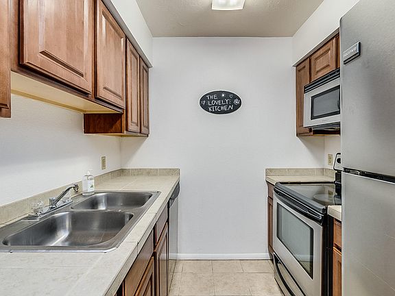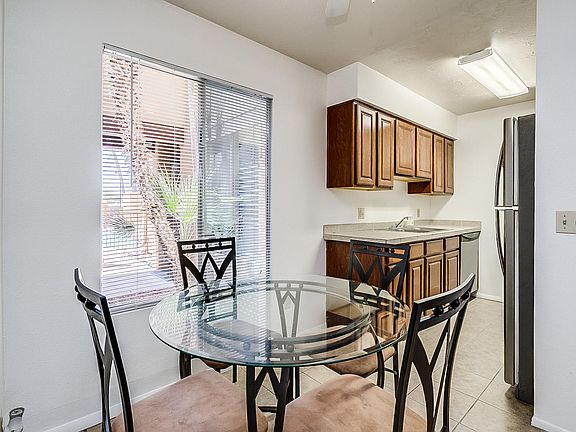 Two Bedrooms & 2 Full Baths! Unit has its own portable washer & dryer in storage unit! Tile floors! Eat-in kitchen with stainless appliances & tile counters! Ground floor unit near pool, sauna, racquetball and tennis courts! Two community pools & spas!! Covered patio and storage room! Excellent location close to U of A, restaurants & shopping!