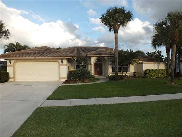 Beautifully Maintained Home on Golf Course! This home is very open and full of natural Sun Light. Enjoy Outdoor Living at its' Best with a Fully Screened Custom Built-in S/S Gas Grill w/ Plenty of Counter & Storage space. The Private Open Deck with Sparkling Pool and Jacuzzi has magnificent Views of the Golf Course & Polo Field. The Granite Kitchen Summer Kitchen and Roof were all replaced 2006. NEW A/C system was installed in 2010. The Master Bedroom has a large Walk In Closet French Doors to the Patio and a Large Walk in Shower w/ separate Garden Tub. The Large 3rd Bedroom has its own Private bathroom w/Walk in Shower -- great for overnight guests. There is also a full Cabana Bathroom leading out to the Pool and Jacuzzi. This home has Tons of Storage and Closet Space along with a custom built Cedar Closet. This home also has Accordion Hurricane Shutters for your peace of mind. Enjoy all there is to offer in this Great Wellington Neighborhood with A Rated Schools The Wellington Mall Gourmet Restaurants & Wellingtons Prestigious Winter Equestrian Festival & Palm Beach Polo. Part of the Golf Course is now shared with Polo West and is within walking distance from your backyard for your enjoyment. This Beautiful home will not last long. Why pay to be on a Golf Course when you can have it for Free! Sellers are motivated & can close quickly.