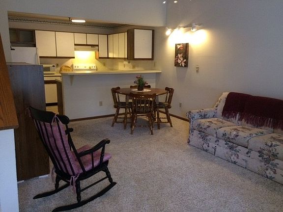Great 1 1/2 story home! Zoned condo but treated as a zero lot, so you own your own yard! Nice floor plan offering a large living rm area, open to kitchen w/breakfast bar, main level laundry, full bath, plus a master bdm on main level w/access to bath & 2nd level offers an open loft area w/closet used as 2nd bedroom. A wonderful 3 season's porch w/a great storage rm area & walks out to nice sized, fenced yard w/mature trees! New furnace '08, new water heater '13! Close to bus stop, shopping & restaurants!