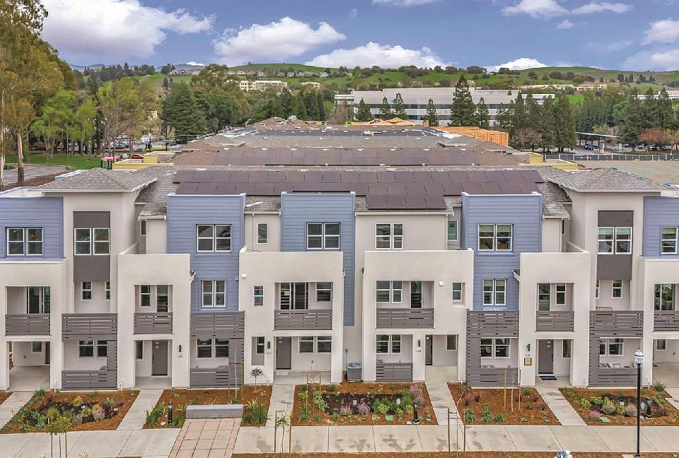 City Village by Summerhill Homes features 404 elegant residences and a 2-acre public park with walking and biking trails, seating areas, and a community barbecue spot. Located near San Ramon's City Walk Neighborhood and within walking distance to City Centers restaurants, movie theaters, and shops, the community offers convenient access to amenities. This Towns Plan 1 is available for quick move-in. This home offers 3 bedrooms, 3.5 bathrooms, a 2-car side-by-side garage, quartz countertops, Bosch stainless steel appliances, and a deck off the family room. The first floor features a bedroom with an en-suite bath, great for guest or office. Both the primary and secondary bedrooms offer a large walk-in closet. Energy efficiency is enhanced with included solar panels. City Village is designed for easy access to schools, work, and public transit, with nearby attractions including Central Park, Canyon Lakes Golf Course, and Bridges Golf Club. Note that the provided images depict another plan 1 home, and actual colors and features may vary.