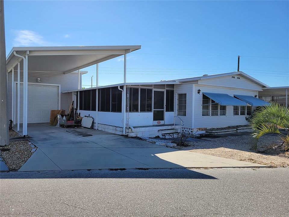 Welcome to Trailer Estates - a 55+ community, with fee simple deeded lots. This 2 bedroom(master BR has walk-in closet), 2 bathroom offers 1056 square feet which includes living/lanai room which has double layer windows & insulated ceiling. There are 4 total electric panels & whole house surge protector, 2 AC units & handicap wheel chair lift at entry door. The home is not setup for a wheel chair throughout. Hot tub included. Also 17 X 25 FOOT GARAGE WITH 10 X 10 ENTRY DOOR, SHEET ROCK, 13' CEILING, 2X6 PRE TREATED LUMBER WALLS & R-19 INSULATION & AC, CARPORT IS 29 FEET LONG & 13 FOOT CEILING, 220-50 AMP SERVICE IDEAL FOR RV HOOKUP(items in garage to remain until April 30,2022 at no cost to the seller), other carport has high ceiling & plenty of parking area. 1 small shed is laundry area, other shed used as welding shop with 220-30 Amp service. There are 2 lots minus 1 foot. Backyard has privacy hedge & property is in "X" flood zone. Taxes & park fees total $1,948 paid per year. Trailer Estates has so much to offer; marina, water front park, pool, shuffleboard, horse shoes, bocce ball, post office, fitness room, Cedar Hammock fire department, wood shop, dancing & much more. Great location - close to shopping, restaurants, SRQ airport, parks, beaches not far away, Ringling Museum, downtown Sarasota, Bradenton, Lakewood ranch & so much more. Welcome to paradise!