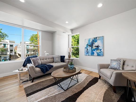 Another amazing Townhome project by Rise Development - located in the heart of Sloan's Lake. Inspired townhome living with high end finishes including natural finished hardwood floors, European cabinets, 3CM Quartz counters, chrome fixtures, subway tile, large format brick set tile, and patterned carpeting. High-quality thoughtful building and a flexible floorplan for modern/active lifestyles. The vaulted ceiling in each bedroom adds to the open feel. One car attached garage. Located 4 blocks East of Sloan's Lake - spend your days paddle-boarding or wake-boarding. Walk the park and take in the best view of the city or walk just a few more blocks to iconic Denver spots like Alamo Drafthouse, BarFly and more. You can walk, bike, or scoot to all of Denver's top spots! Quick commute to Downtown Denver. Tailgate and walk to Broncos games. No HOA, party wall agreement adds to flexibility and affordability. Sloan's Lake is bursting with opportunity - come discover lake living in the city!