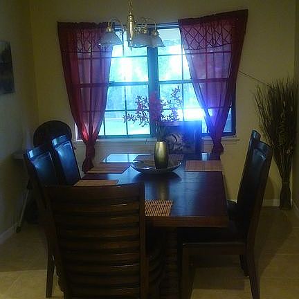 3 bedrooms/2 bathrooms single family home. Interior includes large kitchen with lots of cabinet space and a breakfast bar. Eat-in area includes a sliding glass door accessing the back porch. Master bedroom includes a walk-in closet and a private bathroom with dual sinks.